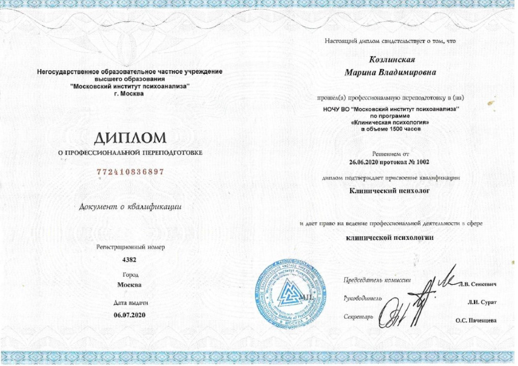 Московский институт психоанализа. Программа повышения квалификации (1500 часов)